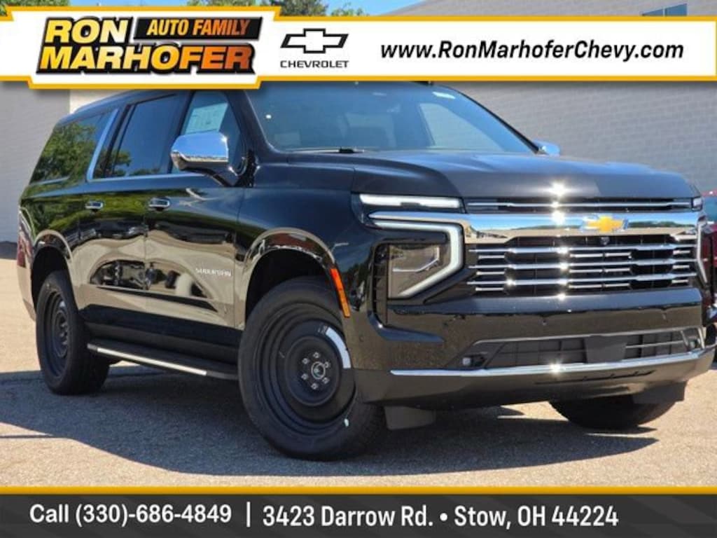$8,591 off MSRP! Ron Marhofer Chevrolet is proud to offer this stunning-looking 2025 Chevrolet Suburban in Black. This 2025 Chevrolet Suburban has passed our comprehensive inspection and comes with the following features; Preferred Equipment Group 1LZ (3rd Row 60/40 Power-Folding Split-Bench, 4-Way Power Driver Lumbar Seat Adjuster, 4-Way Power Front Passenger Lumbar Seat Adjuster, 8-Way Power Front Passenger Seat Adjuster, Auto-Dimming Inside Rear-View Mirror, Bose 10-Speaker Surround w/CenterPoint, Bright Front & Rear Door Sill Plates, Chrome Door Handles w/Body-Color Strip, Dual Exhaust System, Front LED Fog Lamps, Heated 2nd Row Outboard Seats, Heated Driver & Front Passenger Seats, Heated Power-Adjustable Outside Mirrors, Heated Steering Wheel, LED Headlamps w/LED Daytime Running Lamps, LED Tail Lamps, Memory Settings, Perforated Heated & Ventilated Seats, Power Release 2nd Row Bucket Seats, Power Tilt & Telescopic Steering Column, Power-Sliding Center Floor Console, Rear Power Liftgate, Universal Home Remote, and Wireless Phone Charging), 10 Speakers, 20 x 9 Polished Aluminum Wheels, 3.23 Rear Axle Ratio, 3rd row seats: split-bench, 4-Wheel Disc Brakes, 8-Way Power Driver Seat Adjuster, ABS brakes, Adaptive suspension, Air Conditioning, Alloy wheels, AM/FM radio: SiriusXM with 360L, Apple CarPlay/Android Auto, Auto High-beam Headlights, Auto-dimming door mirrors, Auto-dimming Rear-View mirror, Auto-leveling suspension, Automatic temperature control, Black Center Caps (LPO), Brake assist, Bumpers: body-color, Compass, Delay-off headlights, Driver door bin, Driver vanity mirror, Dual front impact airbags, Dual front side impact airbags, Electronic Stability Control, Emergency communication system: OnStar Services capable, Exterior Parking Camera Rear, Four wheel independent suspension, Front anti-roll bar, Front Bucket Seats, Front Center Armrest, Front dual zone A/C, Front fog lights, Front reading lights, Fully automatic headlights, Garage door transmitter, Heated door mirrors, Heated front seats, Heated rear seats, Heated steering wheel, Illuminated entry, Low tire pressure warning, Magnetic Ride Control Suspension, Memory seat, Navigation system: Google built-in compatibility (select service plan required, terms and limitations apply), Occupant sensing airbag, Outside temperature display, Overhead airbag, Overhead console, Panic alarm, Passenger door bin, Passenger vanity mirror, Perforated Leather Seating Surfaces, Power door mirrors, Power driver seat, Power Liftgate, Power passenger seat, Power steering, Power windows, Radio data system, Radio: 17.7 Diagonal Advanced Color LCD Display, Rain sensing wipers, Rear air conditioning, Rear anti-roll bar, Rear reading lights, Rear window defroster, Rear window wiper, Remote keyless entry, Security system, SiriusXM w/360L Trial Subscription, Speed control, Speed-sensing steering, Split folding rear seat, Spoiler, Steering wheel memory, Steering wheel mounted audio controls, Tachometer, Telescoping steering wheel, Tilt steering wheel, Traction control, Trip computer, Turn signal indicator mirrors, Variably intermittent wipers, Ventilated front seats, Voltmeter, Wheels: 22 Multi-Spoke Gloss Black (LPO), Wheels: 22 Steel (LPO), and Wireless Apple CarPlay/Wireless Android Auto.