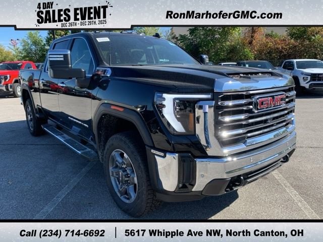 $9,000 off MSRP! Ron Marhofer Buick GMC is pumped up to offer this 2025 GMC Sierra 2500HD SLT in Onyx Black with Black Leather. This Sierra 2500HD is very well equipped with: .
